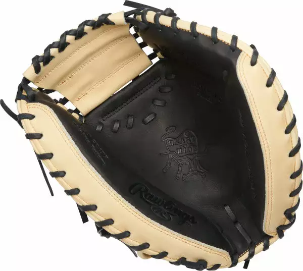 Play like 9X Rawlings Gold Glover, Yadier Molina, with the Heart of the Hide 34-inch catcher’s mitt. It features Yadi’s game day pattern, and offers a large pocket to help you frame more pitches on the corner. Its unique, two-tone black and camel design adds some subtle style to a classic design. As a result you’ll stand out behind the plate.